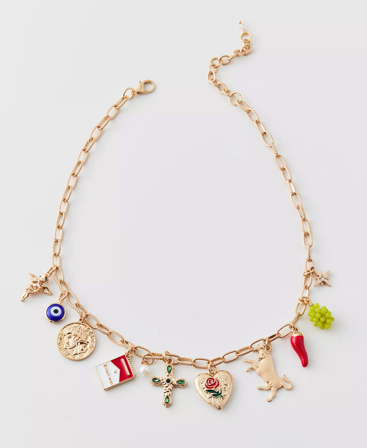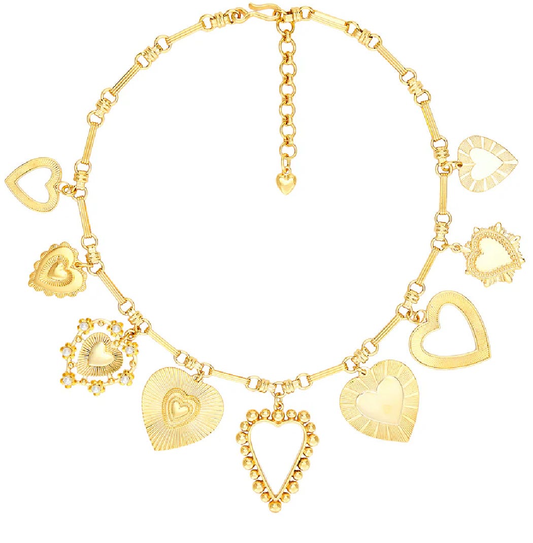 Turns out adolescent me and adult me aren’t all that different, because I’m still crushing big time on charm bracelets and necklaces, which seem to be having a resurgence in popularity. But charm jewelry has been around since the Stone Age, when bones, shells, and pieces of wood were strung together. It was also worn in the Middle Ages and the Renaissance, and during the Victorian Era thanks to Queen Victoria, who popularized gold charms and lockets.