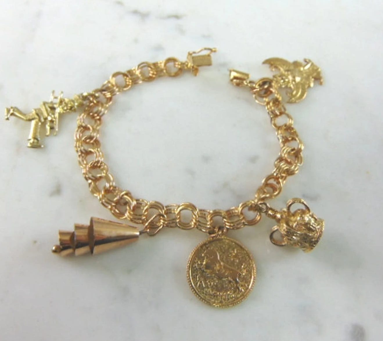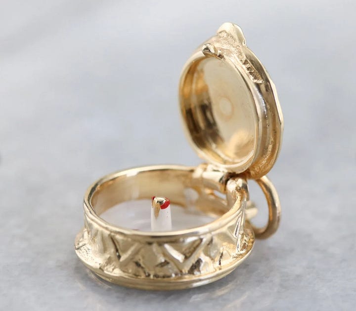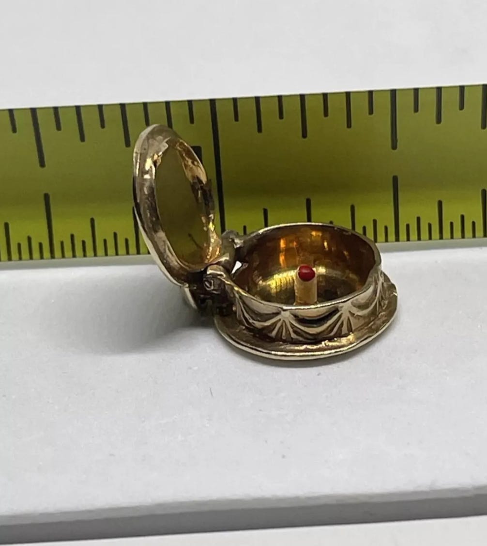 In the 1950s and 60s, charm bracelets were often gifted to young girls, which were then worn into adulthood—charms marking different life events and occasions were added along the way. For example, I'm obsessed with these vintage cake charms from that era that open to reveal a small painted candle. Wouldn’t these make such a sweet birthday gift for a friend or loved one?