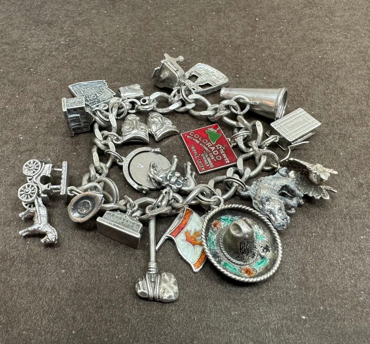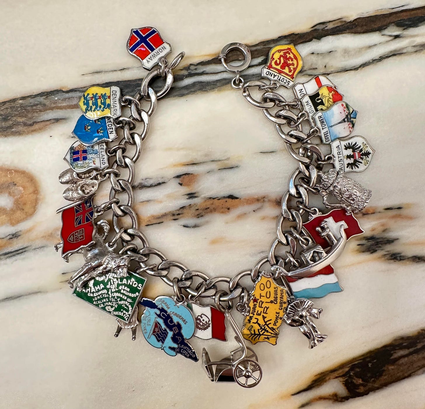 I’ve loved charm jewelry since I was a little girl, including a small silver bracelet decked out with south-of-the-border charms like a sombrero and a huarache sandal that was a souvenir from a family vacation to Mexico, and a vintage travel bracelet passed down from my Grammy that’s adorned with an array of small flag charms from all the countries she visited throughout her life (plus a small silver wolf charm as a nod to our last name). I always delighted in the way the charms daintily dangled from my wrist and the jingle-jangle sound they made anytime I moved my arm (much to the annoyance of everyone around me).